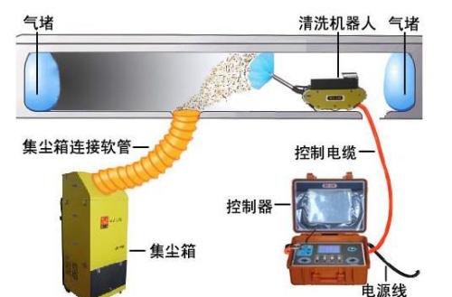 5.要一機(jī)多能;能清運(yùn)管道內(nèi)的塊狀垃圾、可以裝配軟軸毛刷/氣鞭/氣刀類清洗頭進(jìn)行聯(lián)合清掃(裝配氣鞭、氣刀專門清掃消聲孔板部位)可以完成大型管道內(nèi)的噴霧消毒工作等等。